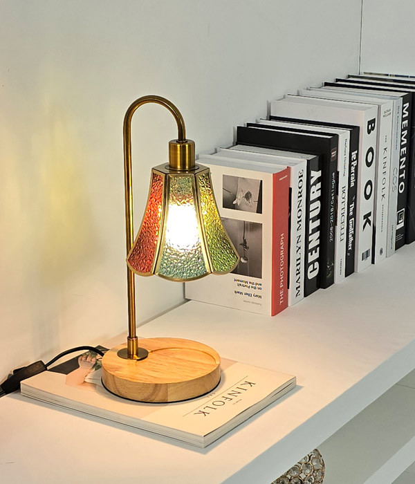 E14베이스 트랜디한 골드 & 우드 스테인드글라스